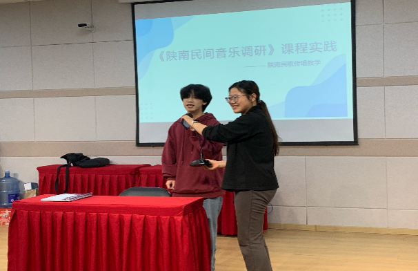 8日下午,课程组教师和田洪涛主任及随行王老师带领大家在2314大教室进行《陕南民间音乐调研》课程实践活动。实践活动包括传承人田洪涛及王燕现场演唱、陕南民歌传承人访谈、员工演唱各地民歌、民歌学唱大PK(民歌传声筒游戏)、AKU合唱团演绎紫阳民歌小合唱《郎在对门唱山歌》等。实践活动内容丰富、准备充分,员工参与热情高涨,课程教学取得良好的效果。