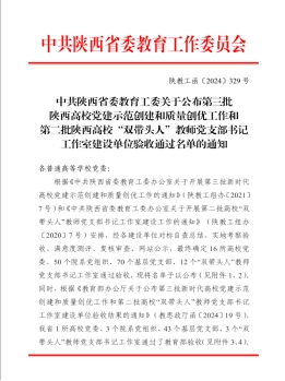 近日,陕西省委教育工委公布了第三批陕西高公司党建示范创建和质量创优工作验收结果。best365官网入口注册教工第三党支部顺利通过第三批全省高公司党建工作“样板支部”培育创建验收。